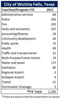 This chart represents the City's total FTE by function and program.